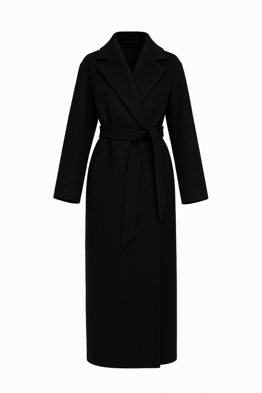 A refined longline coat with a relaxed shoulder cut. Features side slit pockets and a matching fabric belt for a timeless, feminine silhouette. The soft yet structured Italian wool-cashmere blend ensures comfort, warmth, and effortless elegance.